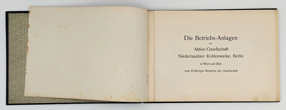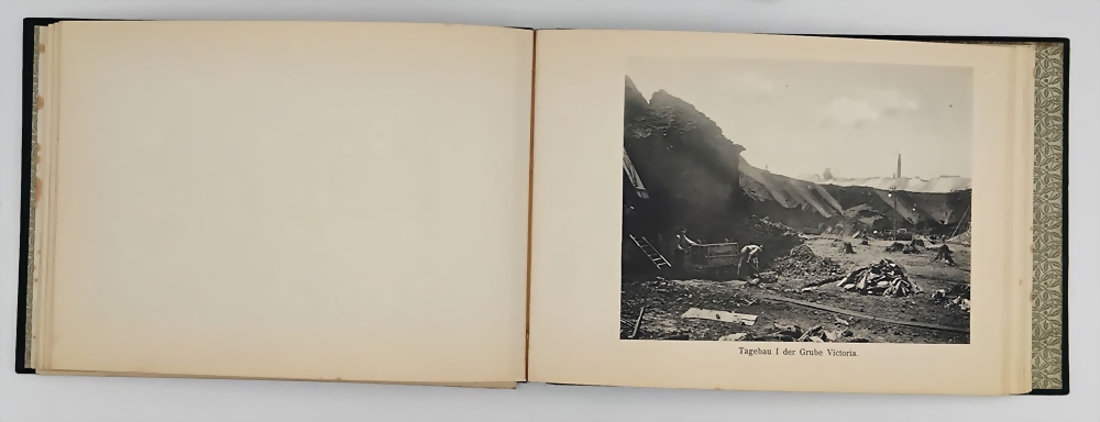 Bildmappe von den einzelnen Gruben, Fabriken, Direktionsgebäuden, Förderanlagen, Tagebau, teilweise mit ausklappbaren Panoramabildern