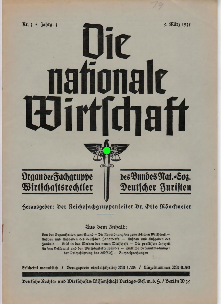 Organ der Fachgruppe Wirtschaftsrechtler des Bundes Nat.-Soz. Deutscher Juristen