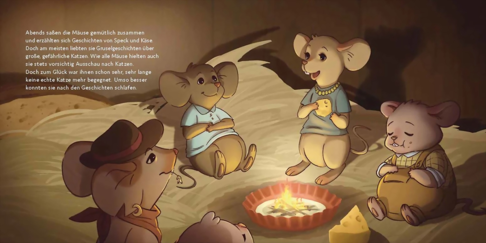 Seit Ewigkeiten haben die Mäuse keine Katze mehr zu Gesicht bekommen. Ja, vielleicht sind Katzen nur eine Idee aus Gruselgeschichten? Wäre ein Leben ganz ohne Angst und Sorgen nicht viel schöner? Also beschließen die Mäuse, sich nicht mehr zu verstecken. Katzen sind abgeschafft!
