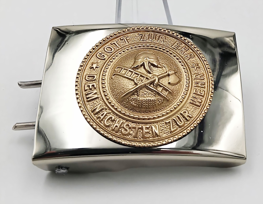 Koppelschloss Feuerwehr Gott zur Ehr - Dem nächsten zur Wehr, silberglänzend