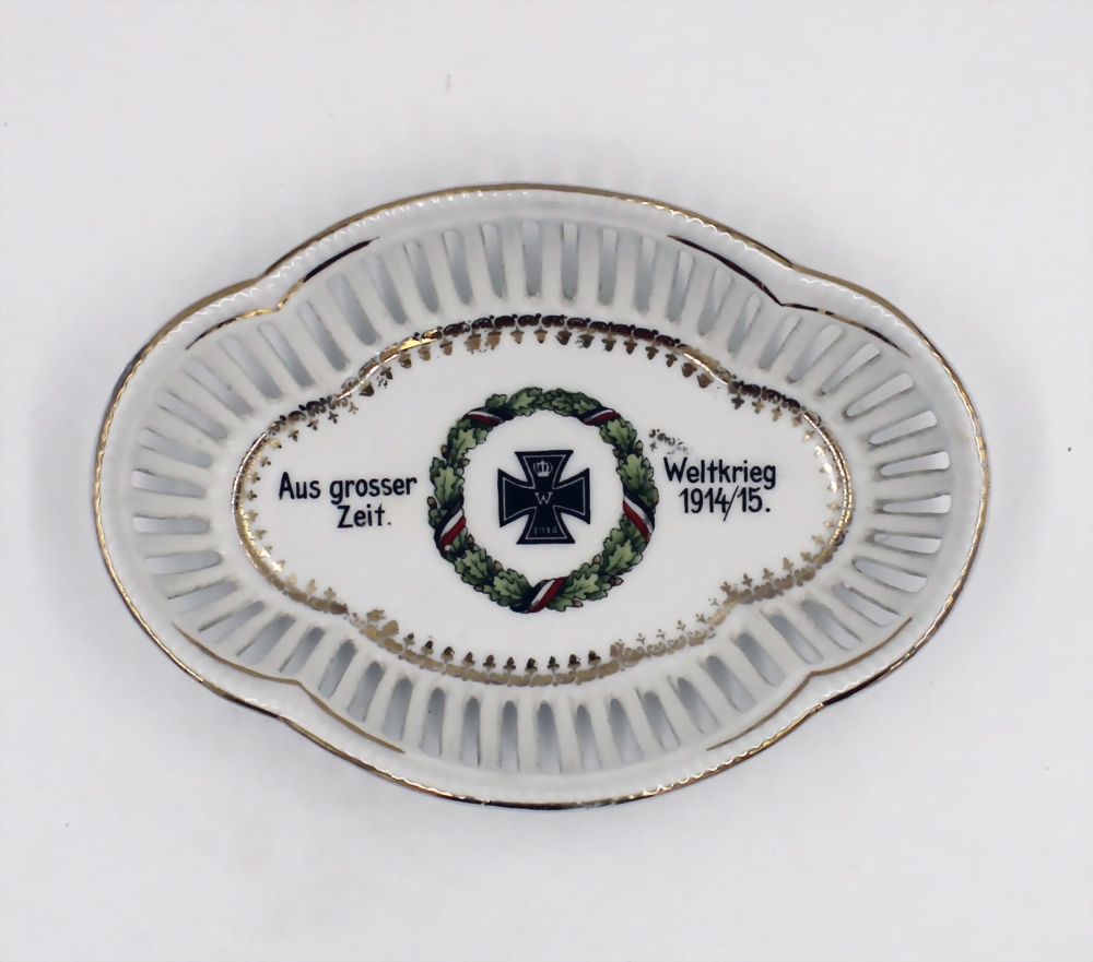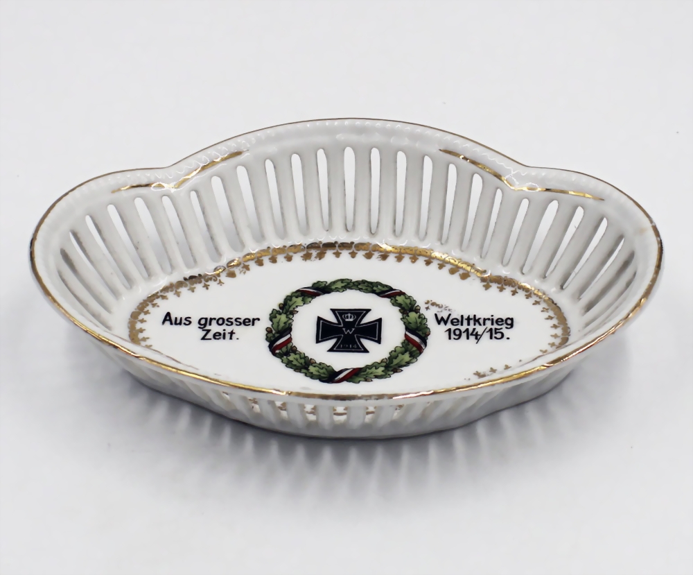 1. Weltkrieg, Patriotische ovale Porzellanschale, Durchbruchporzellan