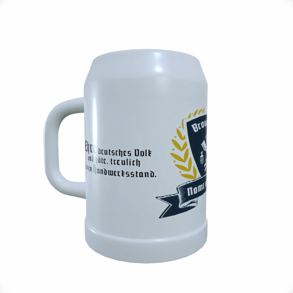 Keramik-Bierkrug in weiss, bedruckt
