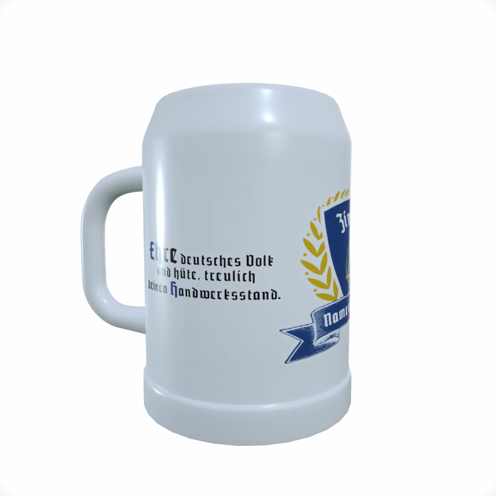 Zunftkrug für Zimmerer mit traditionellen Zuftzeichen und Spruch