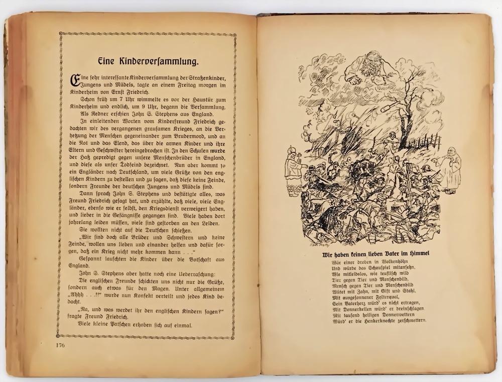 Herausgeber Ernst Friedrich war Gründer des Berliner Anti-Kriegs-Museums 1925. 1933 wurde das Museum geschlossen und sämtliche Schriften ausgesondert.