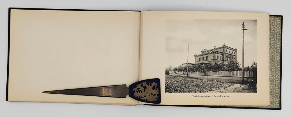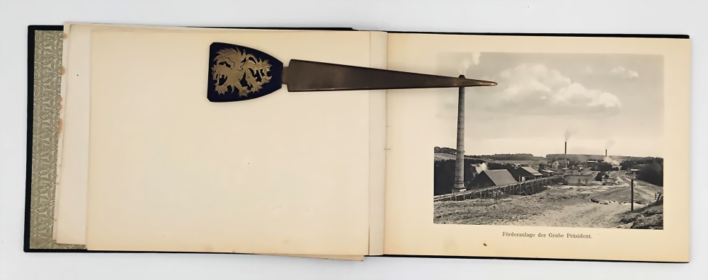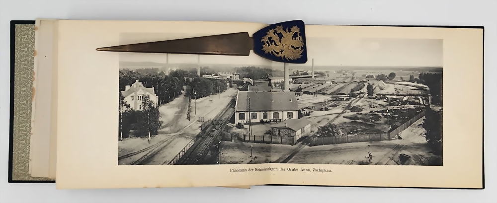 Bildmappe von den einzelnen Gruben, Fabriken, Direktionsgebäuden, Förderanlagen, Tagebau, teilweise mit ausklappbaren Panoramabildern