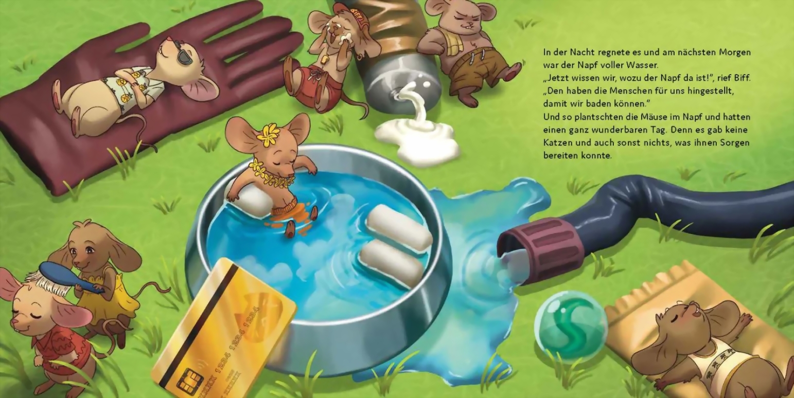Seit Ewigkeiten haben die Mäuse keine Katze mehr zu Gesicht bekommen. Ja, vielleicht sind Katzen nur eine Idee aus Gruselgeschichten? Wäre ein Leben ganz ohne Angst und Sorgen nicht viel schöner? Also beschließen die Mäuse, sich nicht mehr zu verstecken. Katzen sind abgeschafft!