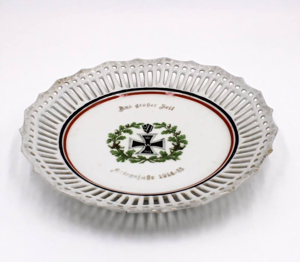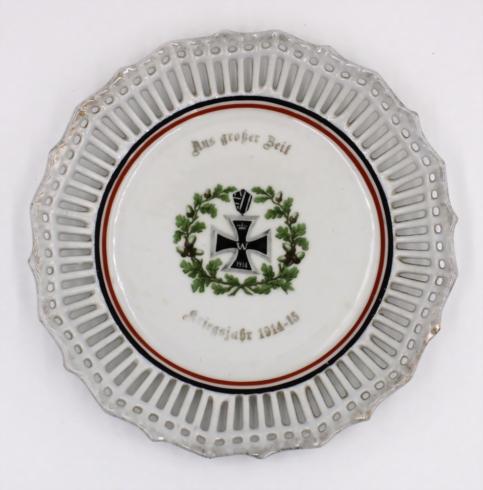 1. Weltkrieg, Patriotischer Porzellanteller, Durchbruchporzellan