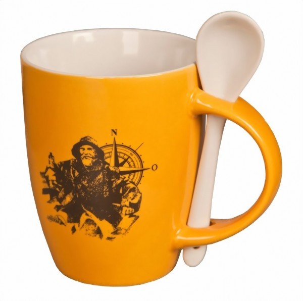 "Wir sind Usedom", Keramiktasse mit Löffel, gelb