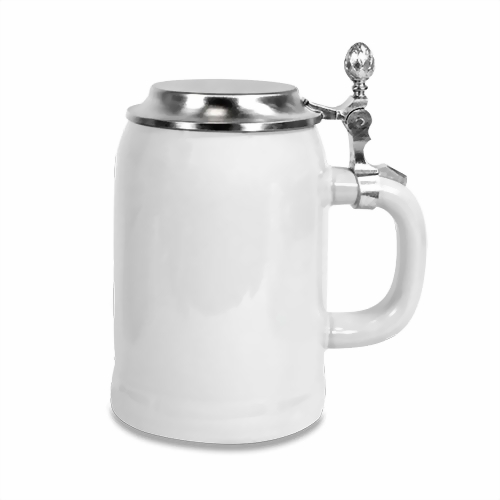 Bierkrug in Weiß mit Zinndeckel und Deinem Logo/Motiv