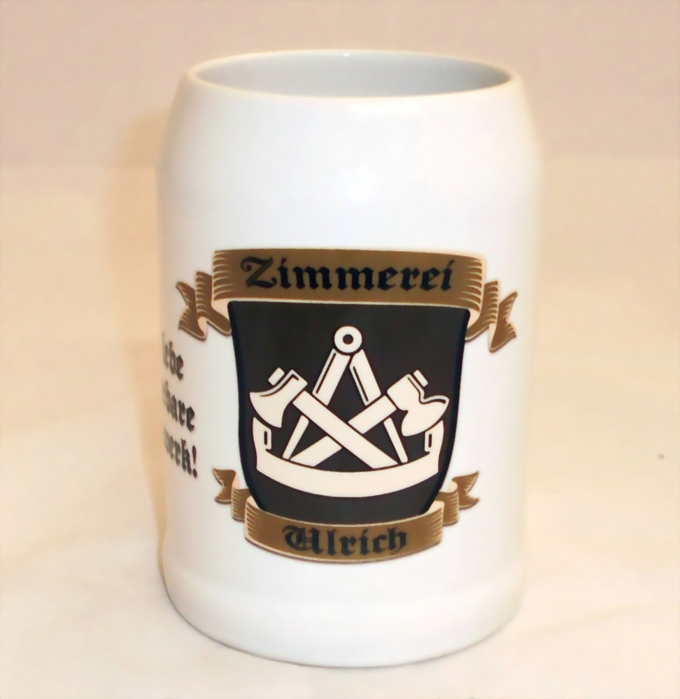 Zimmerer - Bierkrug in weiß mit Deinem Firmen- oder Rufnamen