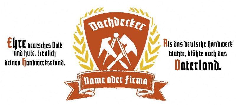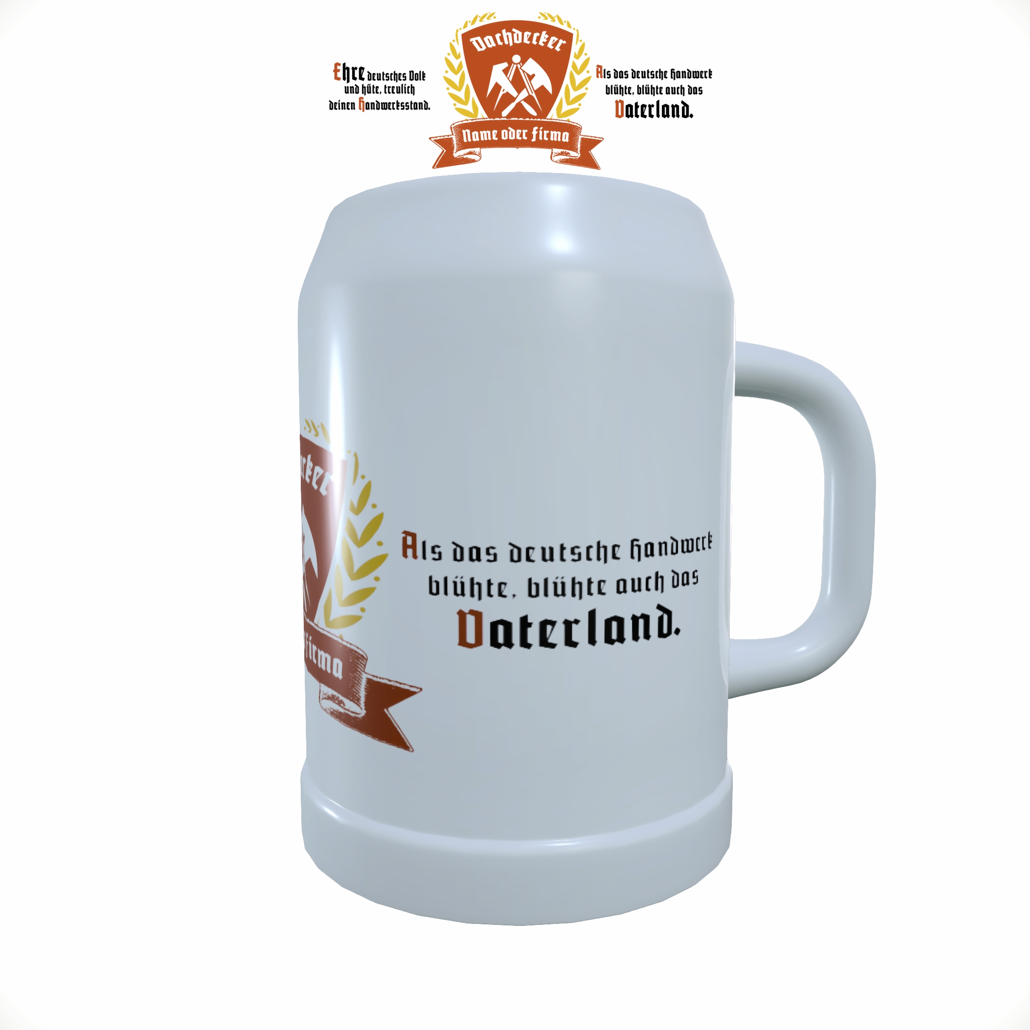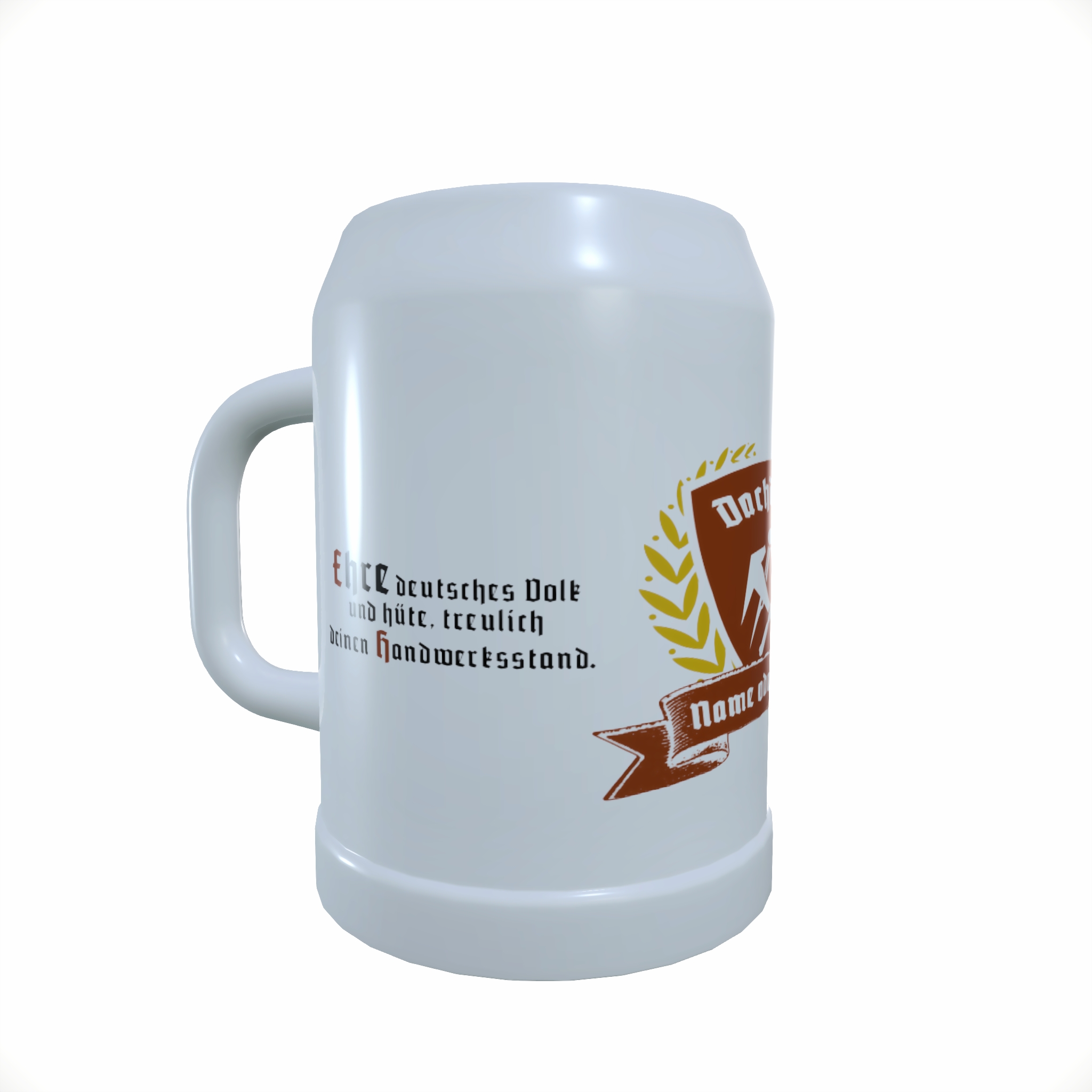 Zunftkrug für Dachdecker mit traditionellen Zuftzeichen und Spruch