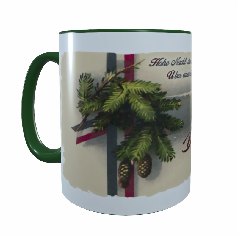 Patriotische Tasse "Hohe Nacht der klaren Sterne...", weiß/dunkelgrün